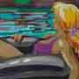 Julie's collage work grew from cards she created as party invitations. Each collage’s design begins as a sketch. The sketch is then converted to a line drawing, and that line drawing becomes a pattern. Each vinyl piece is meticulously cut (in reverse) and adhered to a surface, thereby creating the final collage. Experimentation with many surfaces over the years has revealed that heavy guage acetate yields the best results.